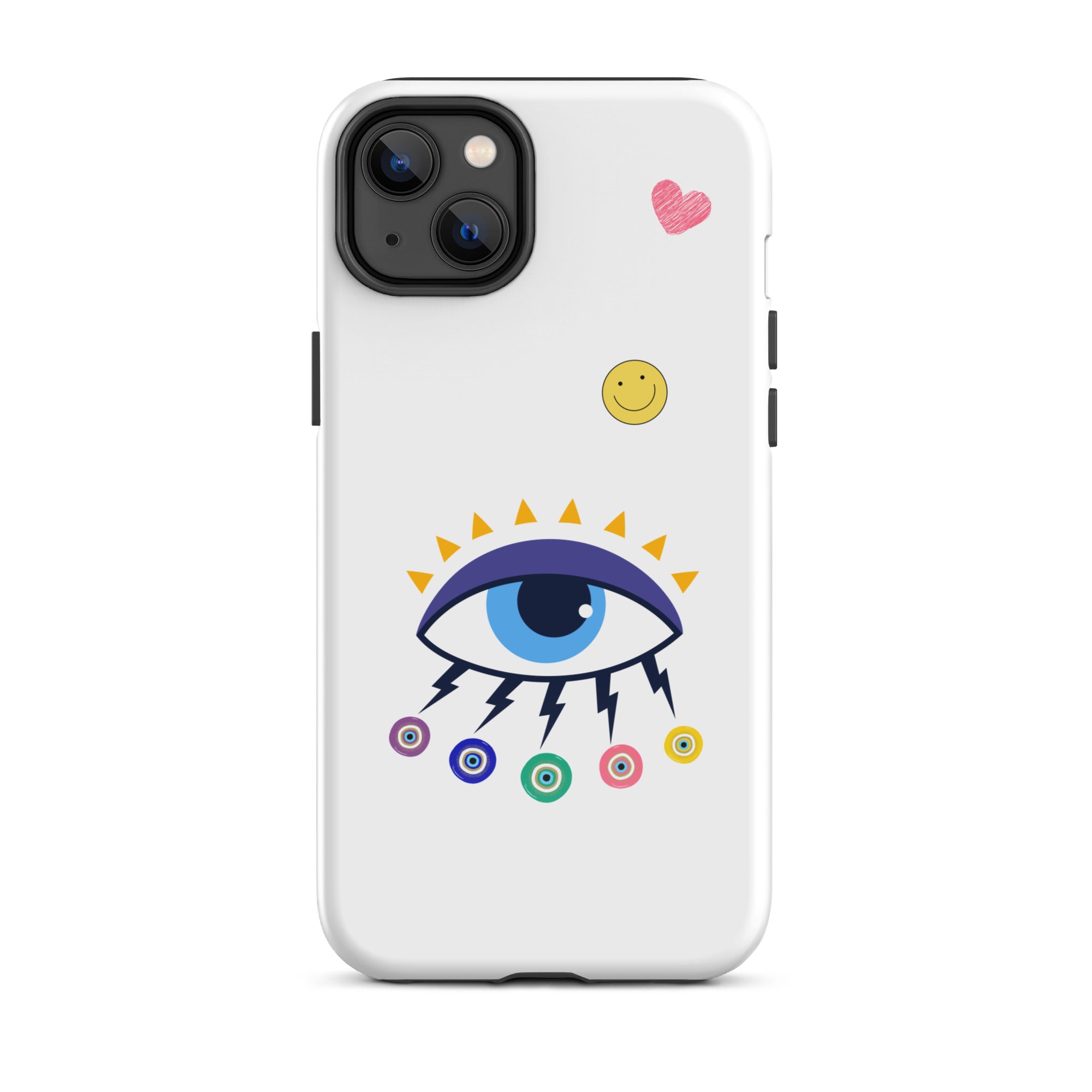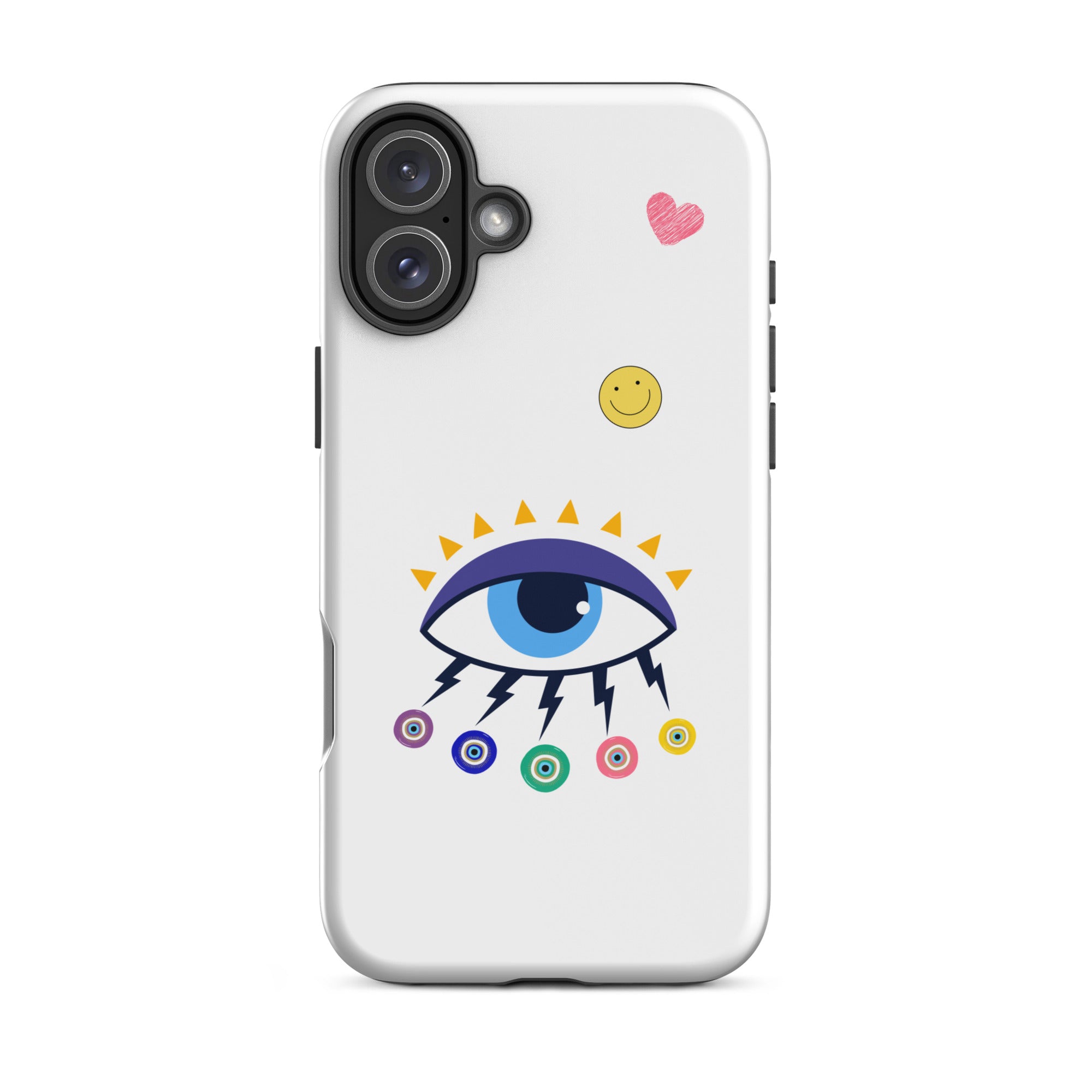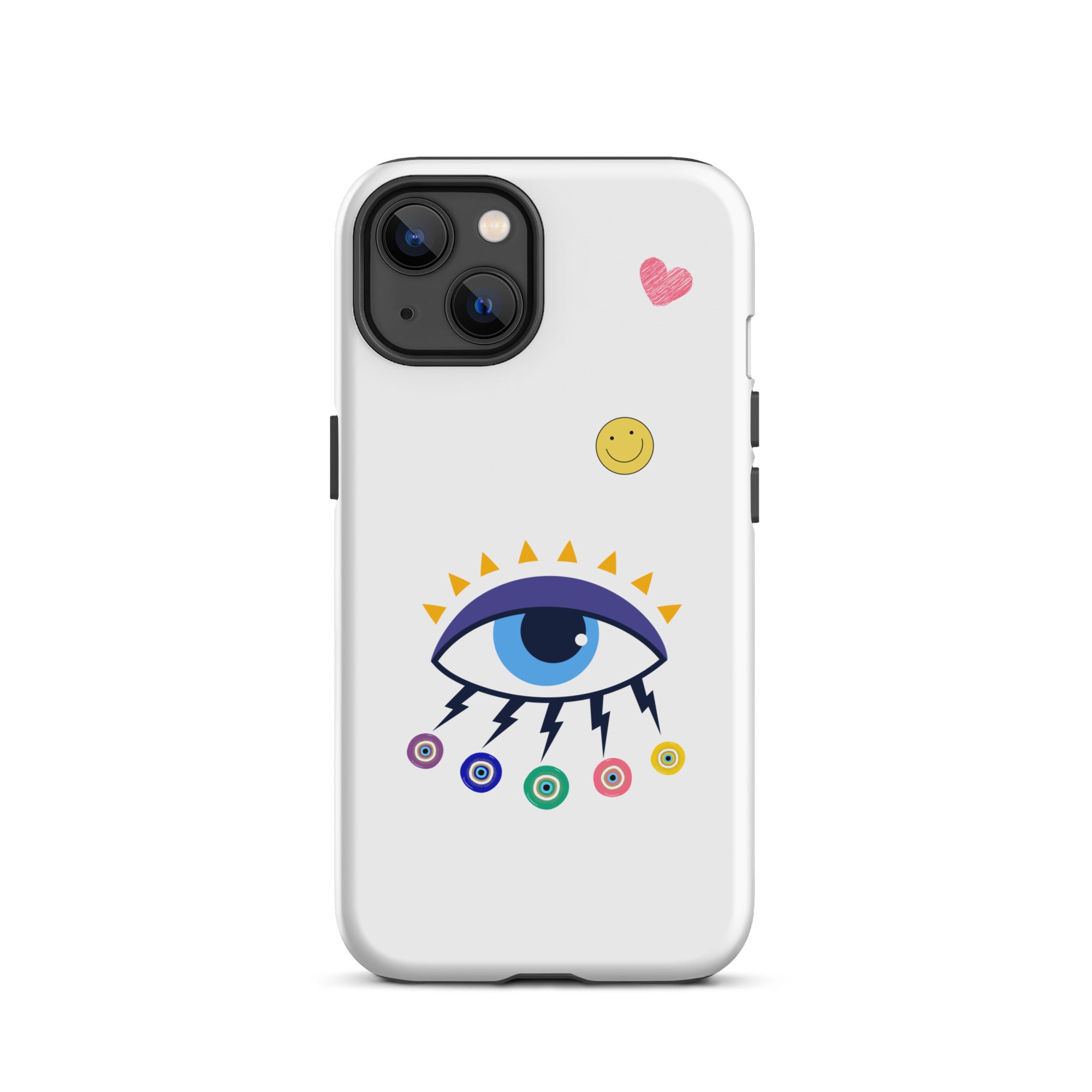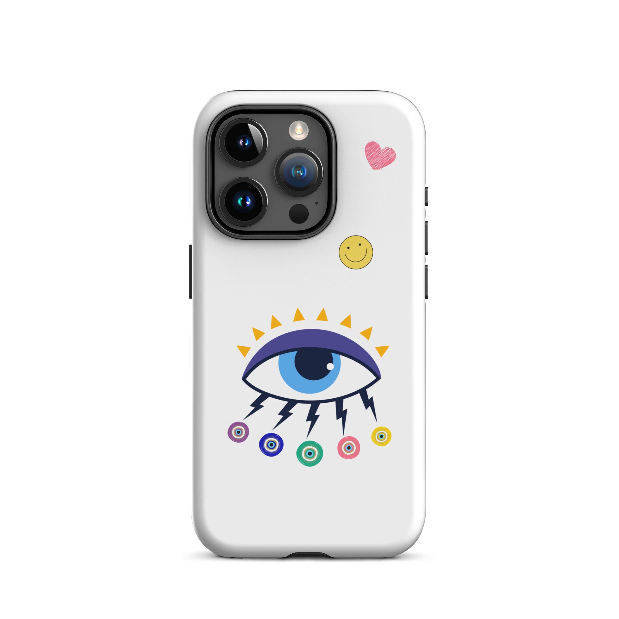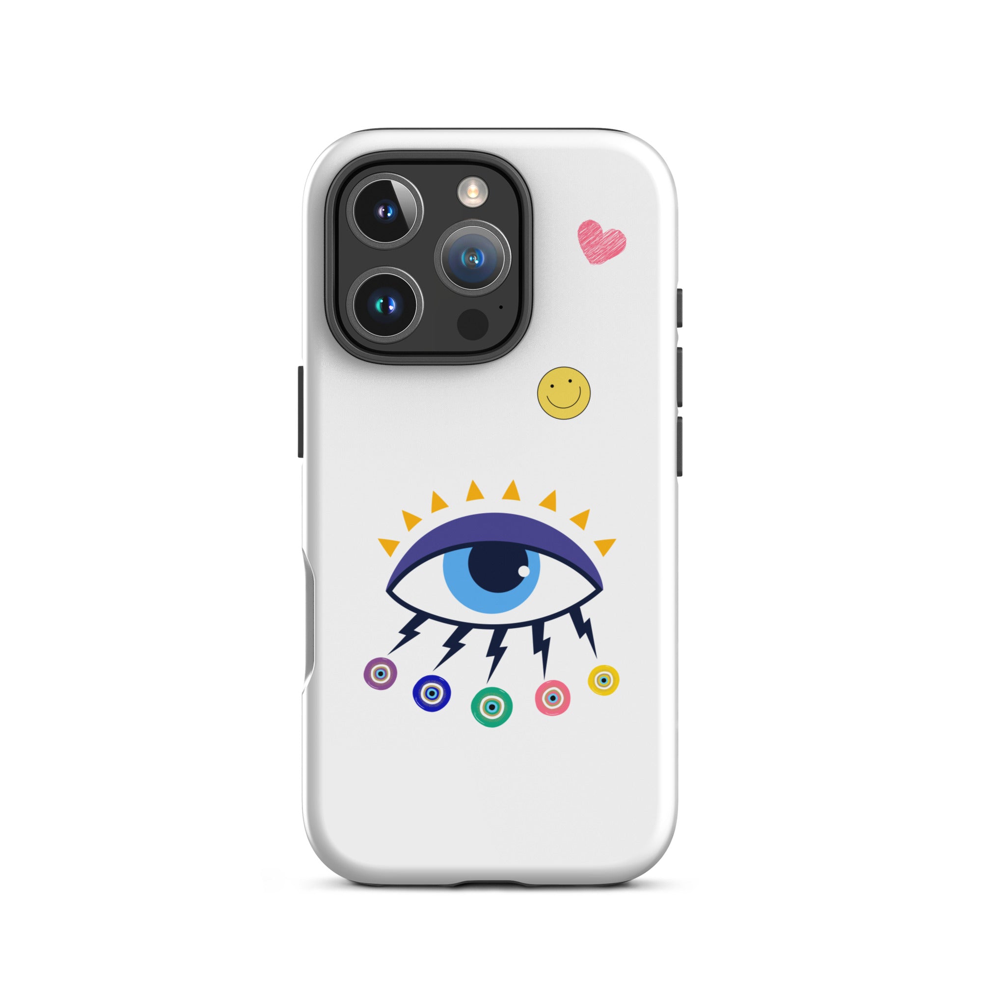 Channel a bit of mystery and magic with our "All-Seeing Eye Vibe iPhone Case"! This case blends protection with personality, featuring an all-seeing eye design that watches over your phone with style. A playful mix of symbols—a blue eye for protection, a charming pink heart, a minimalist smiley, and bold lightning bolts—brings a burst of positivity and charm to your daily essentials. With a smooth, durable finish, this case adds a touch of mystical flair while keeping your phone safe. Perfect for anyone who loves unique designs with good vibes!