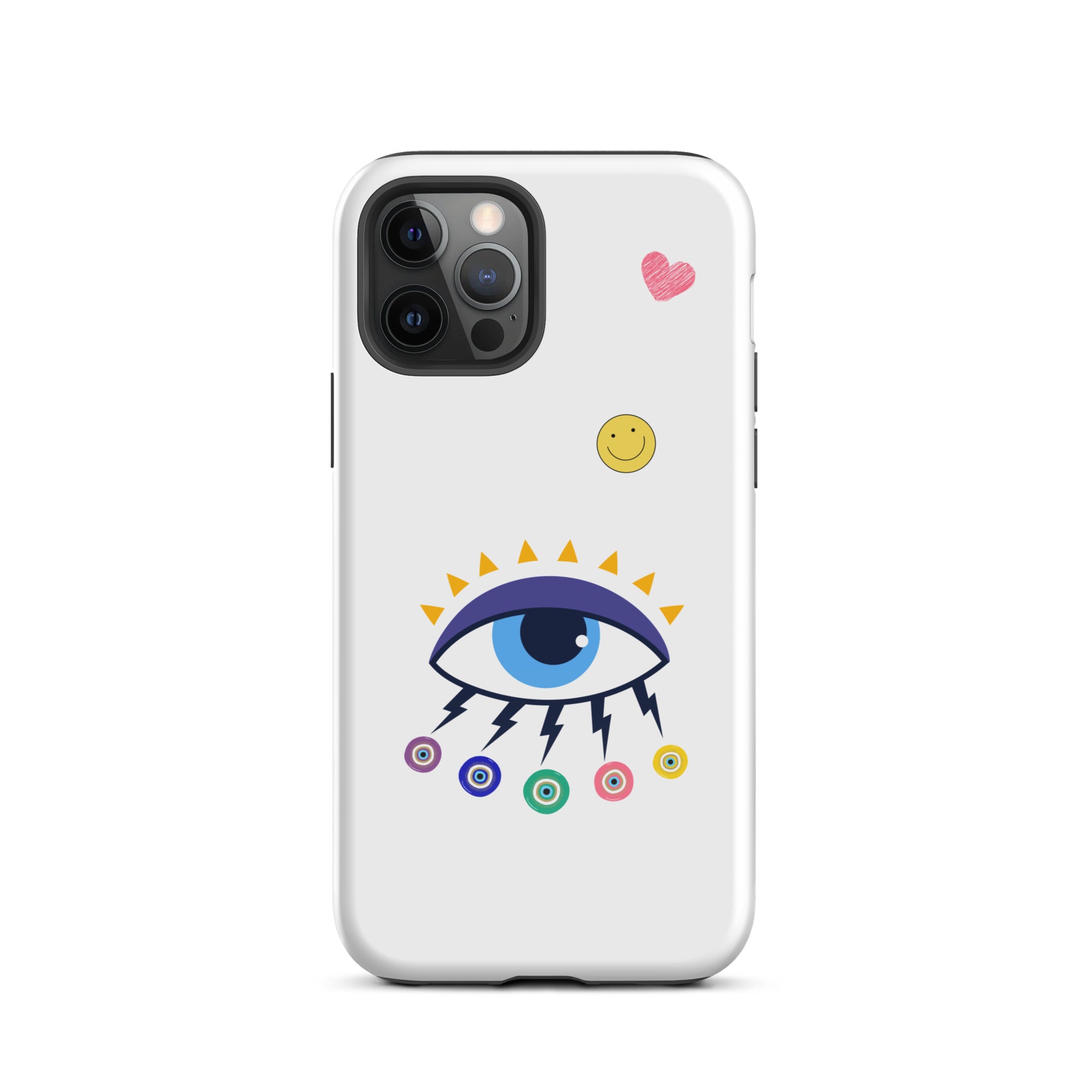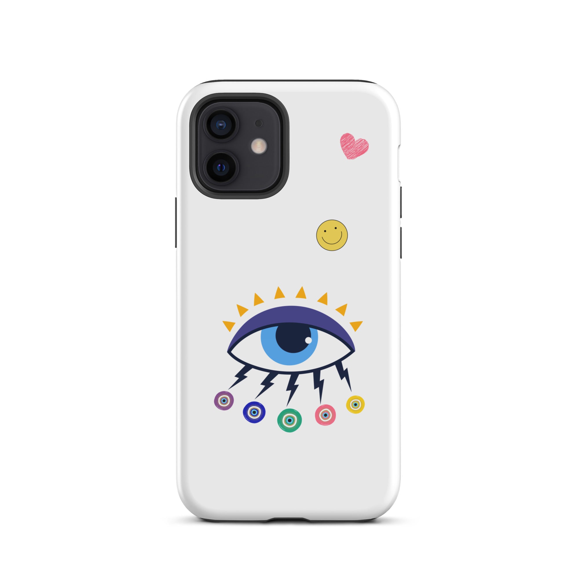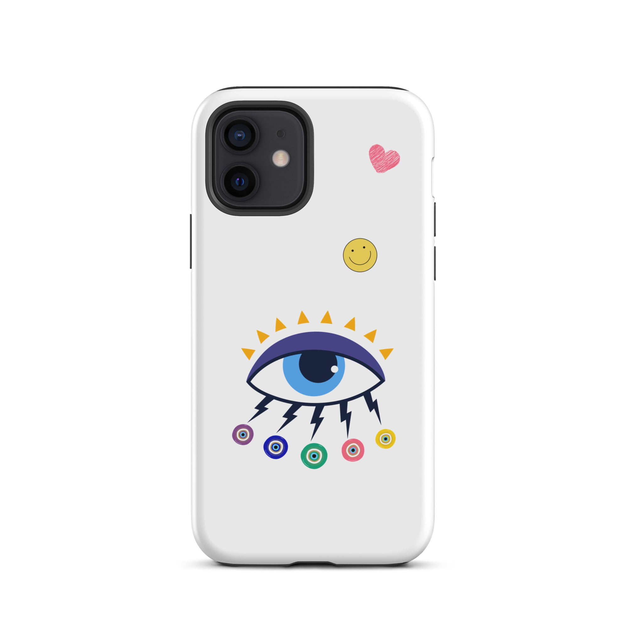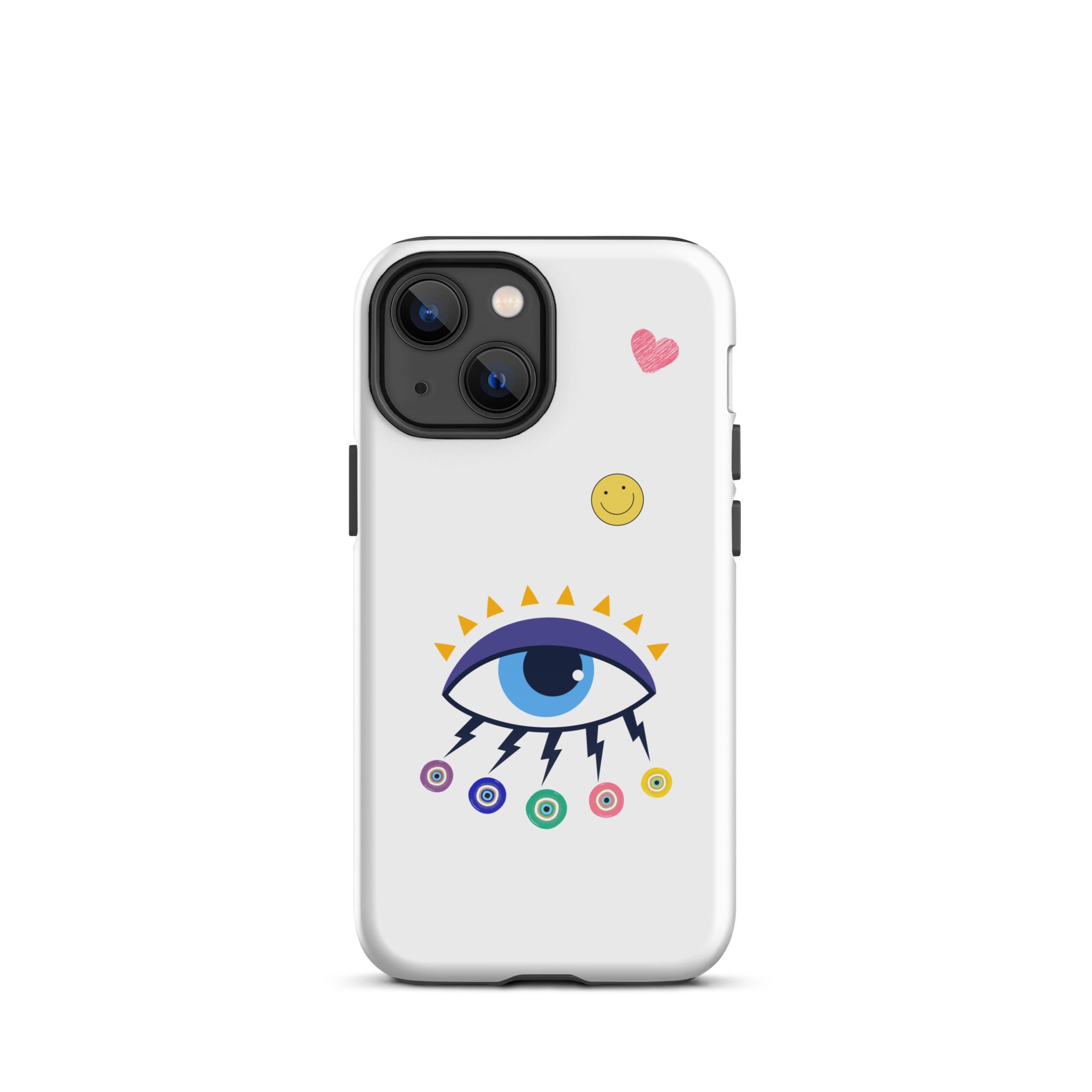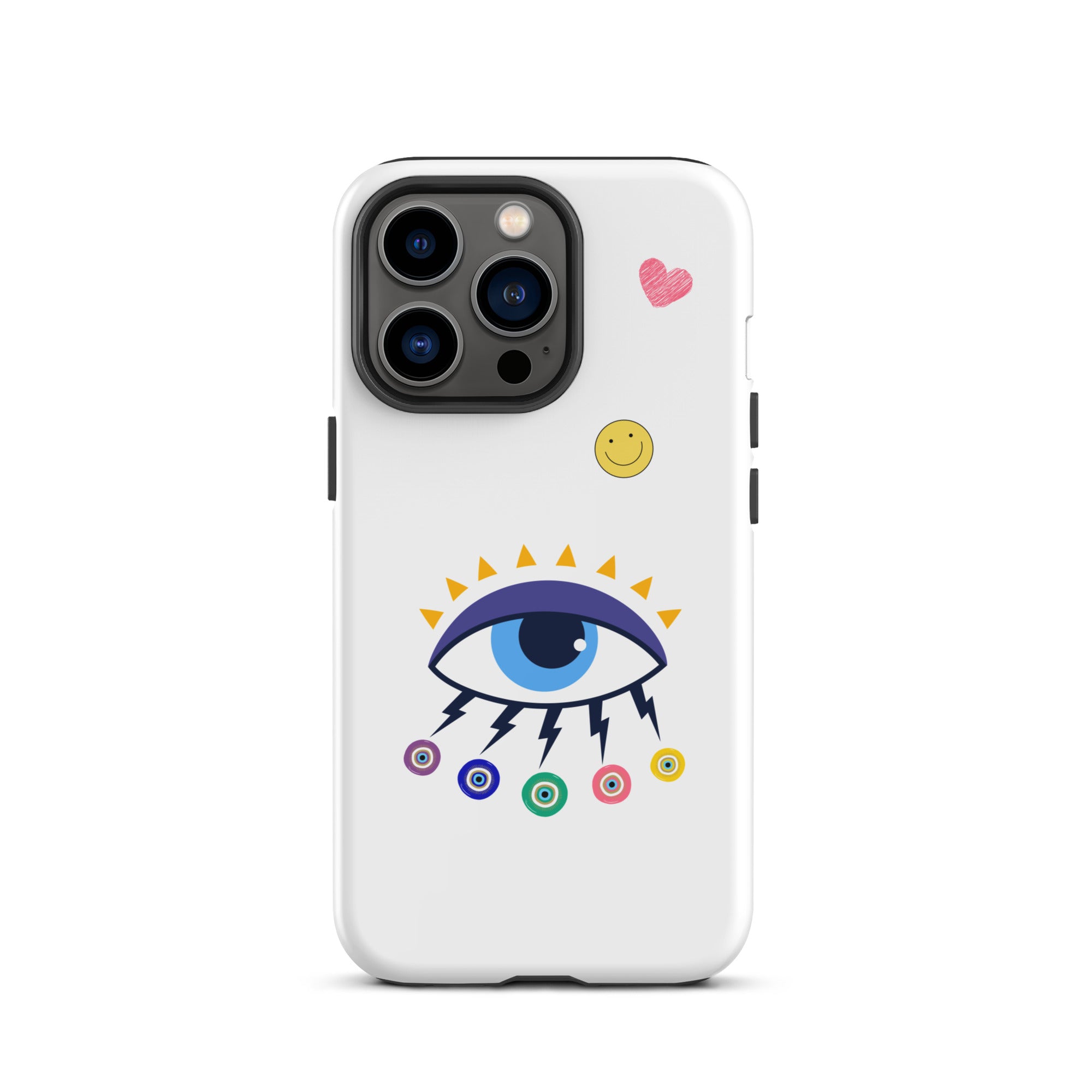 Channel a bit of mystery and magic with our "All-Seeing Eye Vibe iPhone Case"! This case blends protection with personality, featuring an all-seeing eye design that watches over your phone with style. A playful mix of symbols—a blue eye for protection, a charming pink heart, a minimalist smiley, and bold lightning bolts—brings a burst of positivity and charm to your daily essentials. With a smooth, durable finish, this case adds a touch of mystical flair while keeping your phone safe. Perfect for anyone who loves unique designs with good vibes!