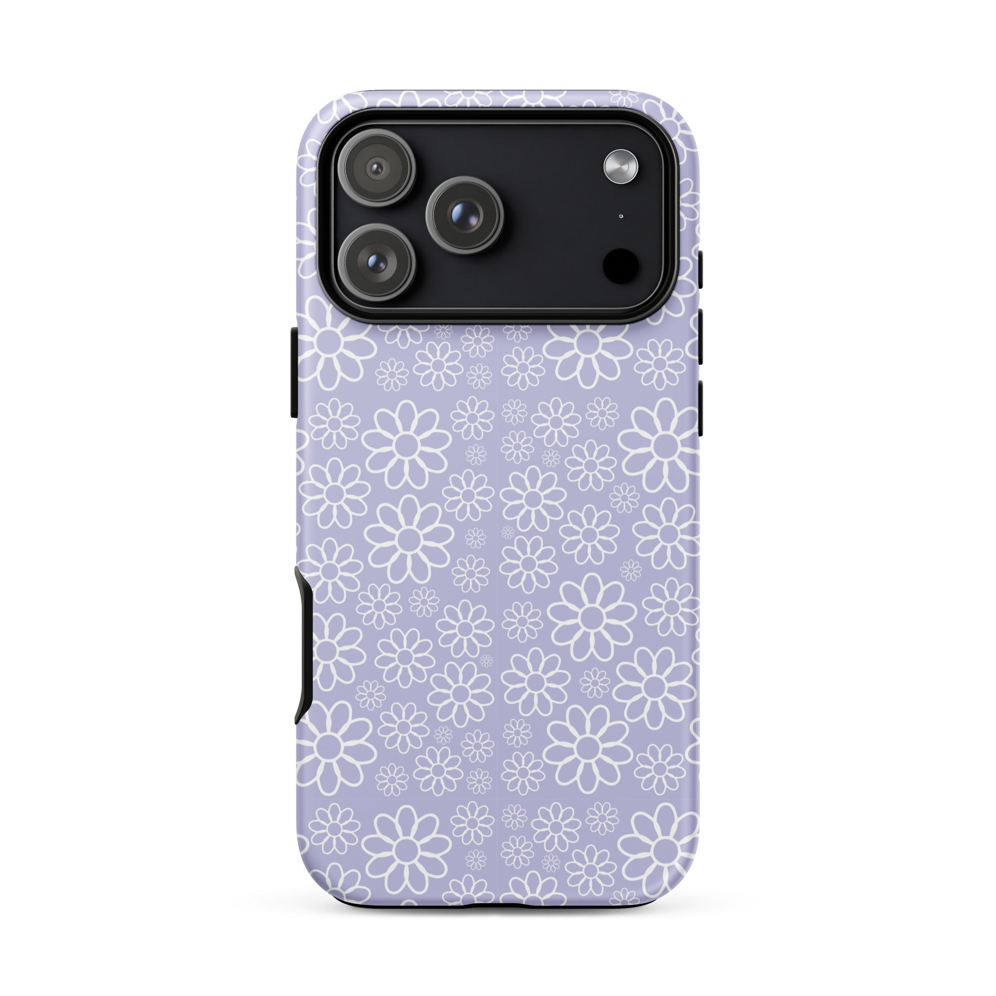 A soft lavender daisy pattern brings retro charm and flower power energy to this protective phone case. Durable, cute, and made to stand out.
