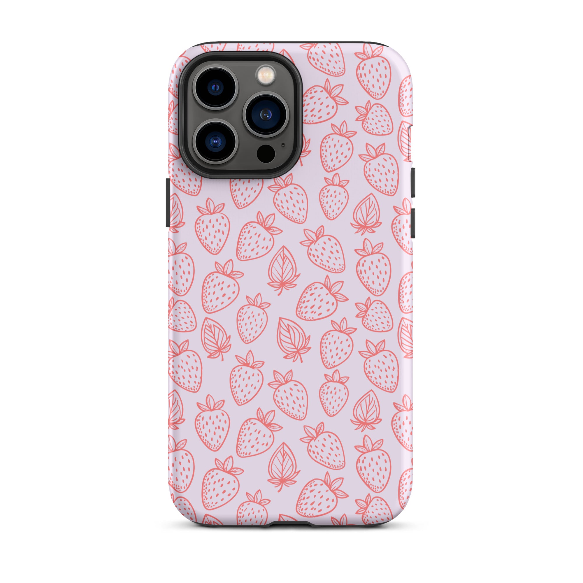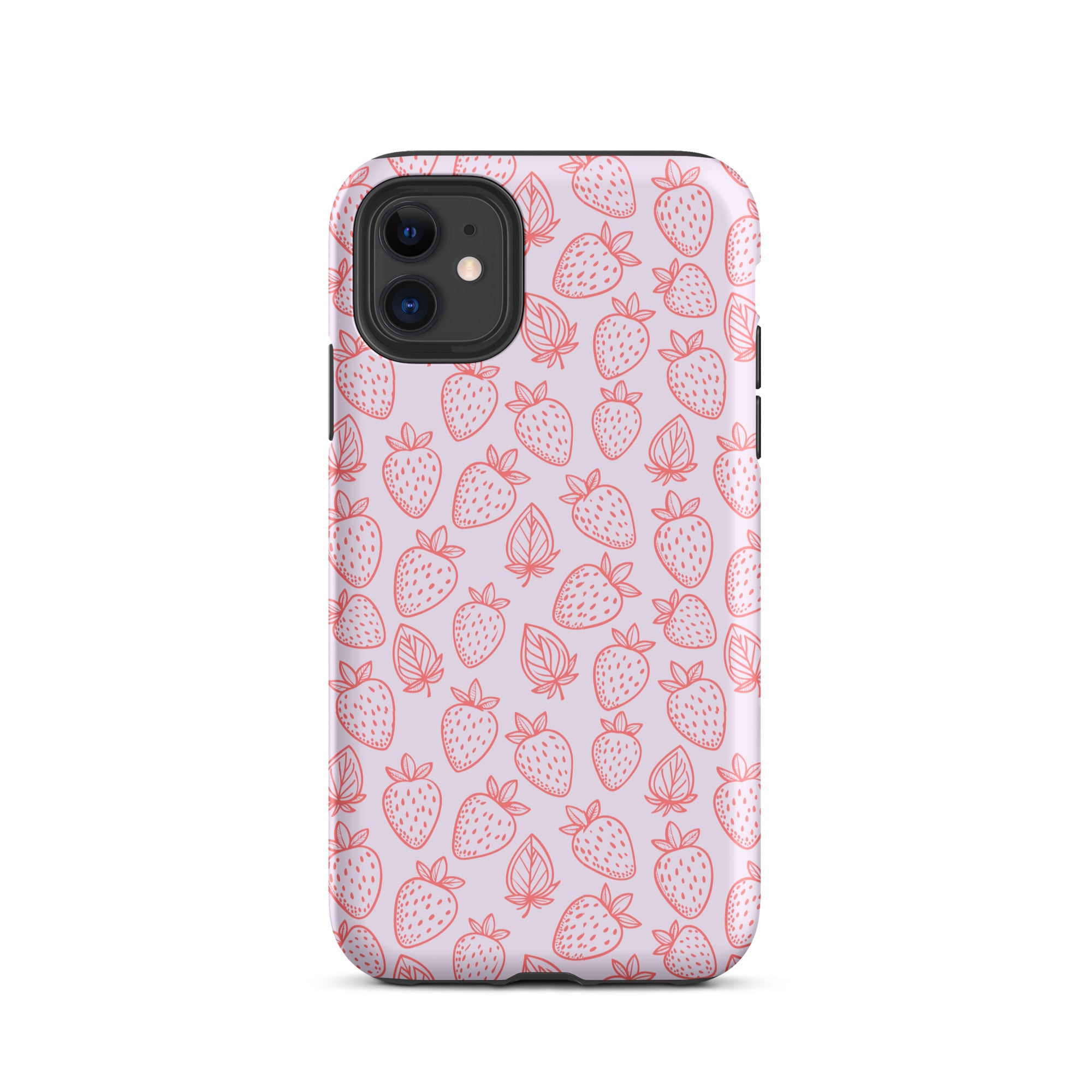 Sweet, bold, and built to protect. This pink strawberry iPhone case brings all the juicy charm with its red line-art berry print on a soft pastel base. The durable two-layer construction offers serious drop protection without sacrificing cuteness.